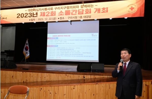[한국뉴스타임=편집국] 구리시는 지난 22일 구리시청 1층 대강당에서 대한적십자사봉사회 구리지구협의회와 지역사회 애로사항을 청취하고 시정 현안사항에 대한 의견을 공유하기 위해 소통간담회를 개최했다고 밝혔다.