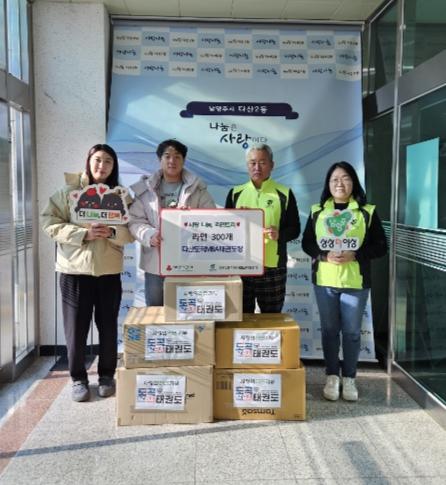 [한국뉴스타임=편집국] 남양주시 다산2동에 소재한 다산도곡MBA태권도장은 27일 관원들과 십시일반 모은 라면 300개를 다산2동 지역사회보장협의체에 전달했다.