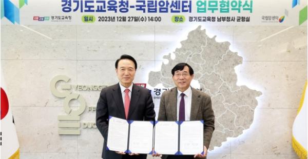 경기도교육청은 27일 국립암센터와 업무협약을 체결해 교직원 개인 맞춤형 건강검진을 추진한다고 밝혔다.