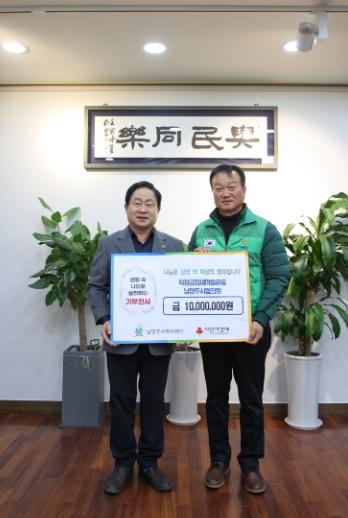 [한국뉴스타임=편집국] 남양주시는 직장공장새마을운동남양주시협의회가 27일 시장집무실에서 지역 내 어려운 이웃을 돕기 위한 후원금 1,000만 원을 남양주시복지재단에 전달했다고 밝혔다.