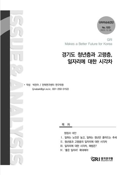 경기연구원은 지난 8월 7~9일 경기도민 1천 명을 대상으로 인식조사를 실시한 ‘경기도 청년층과 고령층, 일자리에 대한 시각차’ 보고서를 발간했다고 28일 밝혔다.