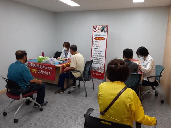 구리시(시장 안승남)는 22일 구리고용복지플러스센터에서 코로나19 여파로 잠정 중단됐던 구직자 ‘토닥토닥 몸 건강잡고 프로그램’을 재개했다고 밝혔다. 건강상담부스 5개를 설치하여 방문 민원인 138명에 대한 혈압·혈당 검사 및 건강 상담을 실시했다.
