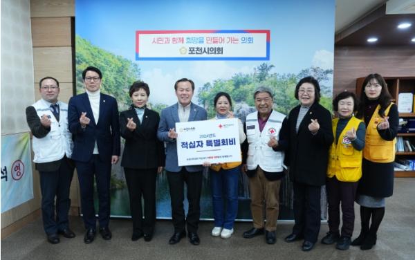 이날 전달식에는 포천시의회 서과석 의장을 비롯한 시의원들과 이재정 대한적십자사 경기도지사 회장, 한은숙 적십자봉사회 포천시지구협의회 회장 등이 참석했다.