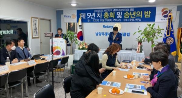 [한국뉴스타임=편집국] 국제로타리 3600지구 남양주동부로타리클럽은 지난 28일 제5년 차 총회 및 송년의 밤 행사에서 남부희망케어센터와 함께 사회 봉사활동에 대한 보고와 협력 방안을 논의했다.