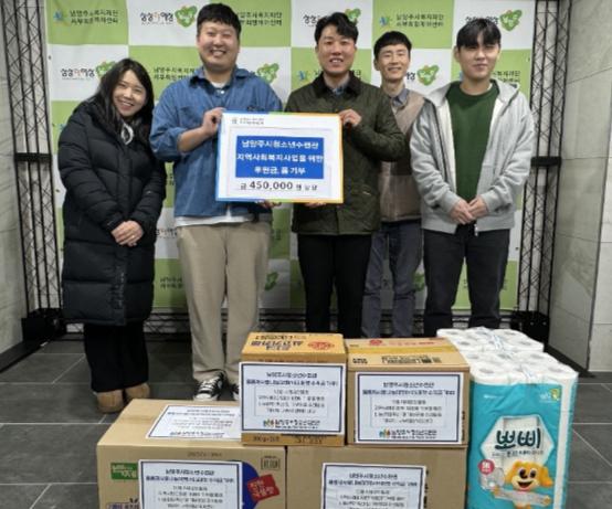 [한국뉴스타임=편집국] 남양주시는 남양주시청소년수련관에서 임직원들이 자발적으로 모은 기부금 25만 원과 플리마켓 수익금으로 구입한 20만 원 상당의 겨울나기 물품을 남양주시 사회복지관 서부희망케어센터(센터장 김기수)에 전달했다고 28일 밝혔다.
