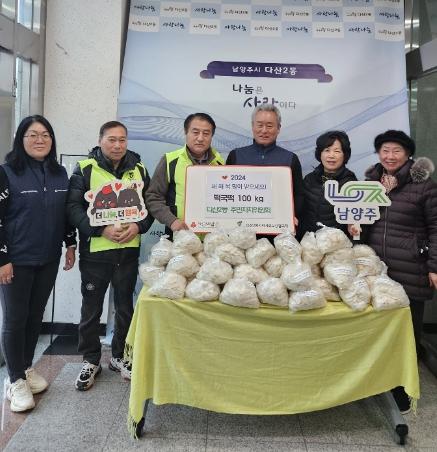 [한국뉴스타임=편집국] 남양주시 다산2동 주민자치위원회는 지난 2일 떡국떡 100kg를 다산2동 지역사회보장협의체에 전달했다.