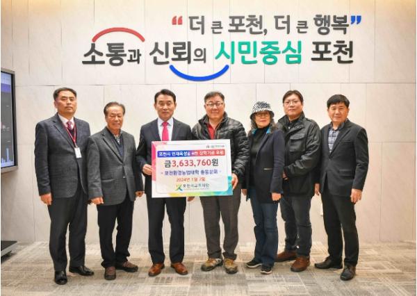 (재)포천시교육재단은 2일 포천환경농업대학 총동문회에서 3백6십여만 원을, 대한산란계협회 포천지부에서 5백만 원의 장학금을 기탁했다고 밝혔다.