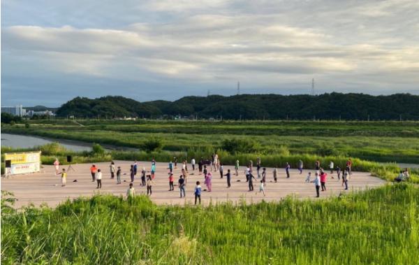 씽씽 활력체조는 오는 10월 29일까지 매주 화, 목 19시에서 20시까지 문산 임월교 둑방길에서 진행된다.