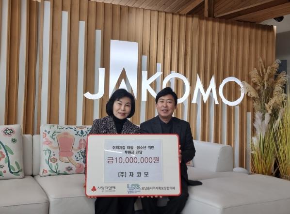 박경분 ㈜자코모 대표이사는 “어려운 이웃을 돕는 것은 언제나 기쁘고 좋은 일”이라며“앞으로도 어려운 이웃을 위한 따뜻한 관심과 기부를 지속적으로 이어갈 것”이라고 말했다.
