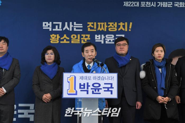 박윤국 예비후보는 “가평·포천 곳곳을 다녀보면 주민들이 실생활에서 피부로 느끼는 경제와 민생은 어려움을 넘어 위태롭고 절박한 현실로 민심은 혹독한 겨울보다 더 꽁꽁 얼어붙어 있다”고 밝혔다. 또한 “포천·가평은 정부 수립이후 보수 정권을 지지하고 정부의 시책에 순응하며 온갖 고통을 참았지만 지금의 현실을 낙후지역이라는 오명을 벗어나지 못했다”며 “늦었지만 제대로 하겠다. 경험과 경륜, 지혜는 모방할 수가 없다, 정치의 근본은 믿음이며 신뢰를 잃으면 정치가 없는 것이다”고 강조했다.