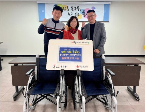 함광호 대표는 “동구동지역사회보장협의체에서 추진 중인 휠체어 대여사업을 알게 되어 후원하게 됐으며, 경량휠체어가 필요한 주민들에게 작은 도움이 됐으면 한다.”라고 소감을 밝혔다.