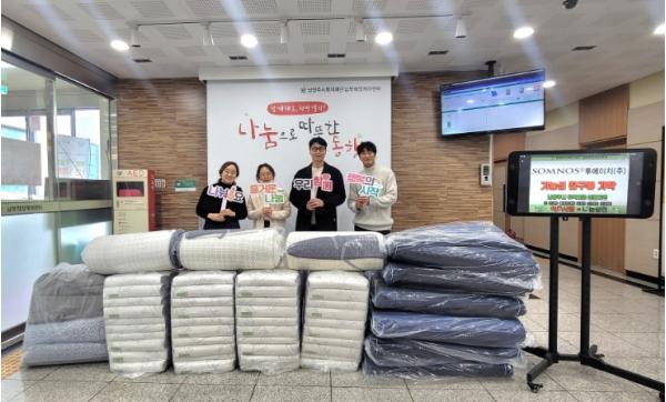 한편, 기능성침구류 전문 업체인 투에이치(주)는 지난해에도 남부희망케어센터에 자사의 기능성 침구 브랜드인 솜노스 제품을 기증한 바 있다.