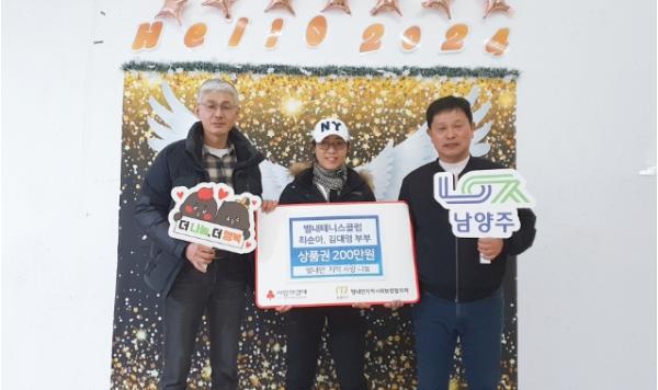[한국뉴스타임=편집국] 남양주시 별내면은 지난 11일 별내테니스클럽 최순아, 김대영 부부가 설 명절을 앞두고 취약계층을 위한 온누리상품권 10,000원 200장을 기탁했다고 밝혔다.