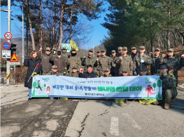 [한국뉴스타임=편집국] 남양주시 별내면은 지난 12일 육군 제5799부대 장병들과 함께 ‘우리 동네 쓰담 데이’ 행사로 새해맞이 환경정화 활동을 실시했다.