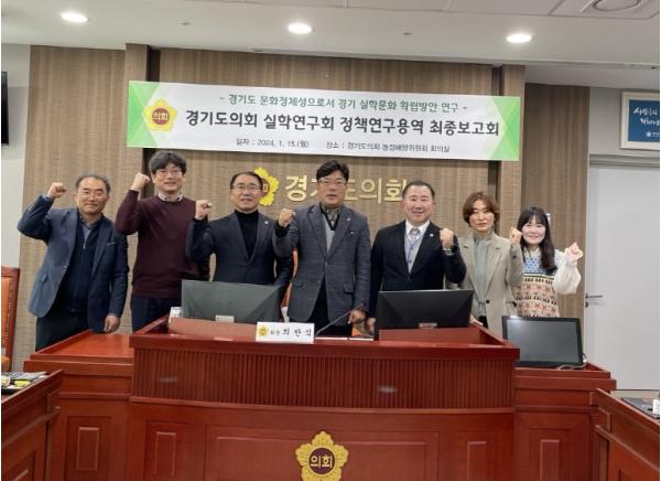 이날 보고회에는 연구회 최만식 회장을 비롯해 회원인 김선영 의원(경제노동위원회), 김철진 의원(문화체육관광〃) 등 회원과 농정해양전문위원실, 경기도 문화정책과, 연구용역 수행기관인 (사)다산연구소 연구진 등이 참석했다.