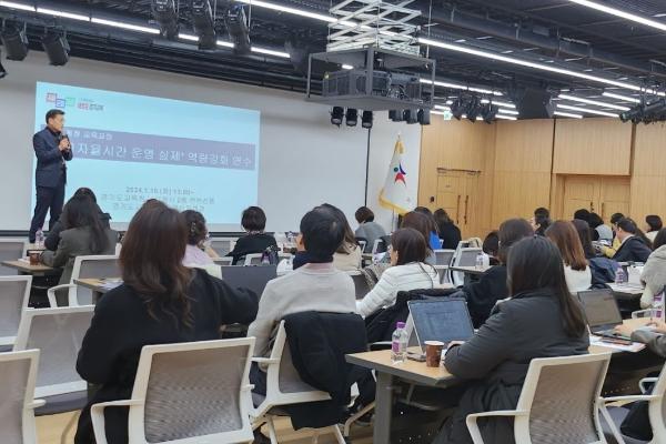[한국뉴스타임=편집국] 경기도교육청이 16일 교육과정 핵심교원을 대상으로 2022 개정 중학교 교육과정 ‘학교자율시간’ 운영을 위한 역량강화 시간을 마련했다.