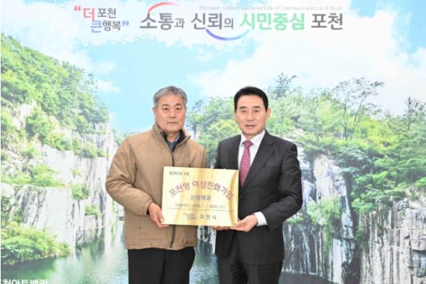 [한국뉴스타임=편집국] 포천시는 지난 16일 2024년 포천형 여성친화기업으로 선정된 ‘신성제과’에 포천형 여성친화기업 인증서와 현판을 수여했다.