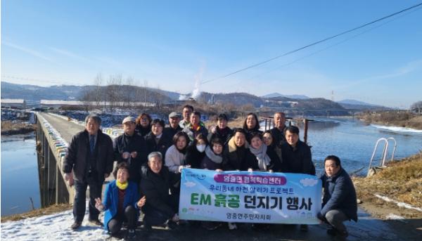 이날 행사에는 영중면 주민자치위원과 프로그램 수강생 등 30여 명이 참석했다. 행사에 사용된 800여 개의 EM 흙공은 영중면 행복학습센터 프로그램인 하천 살리기 프로젝트를 통해 지난해 12월 직접 제작했다.