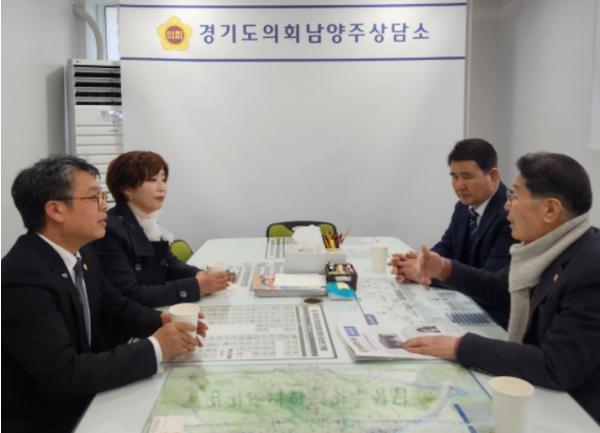 [한국뉴스타임=편집국] 경기도의회 정경자(국민의힘, 비례) 도의원과 이석균(국민의힘, 1) 의원은 15일 경기도의회 남양주상담소에서 대한민국월남전참전자회 권건좌 경기도지부장, 김진배 경기도지부 사무국장과 만나 참전유공자 대우를 위해 논의하는 시간을 가졌다.