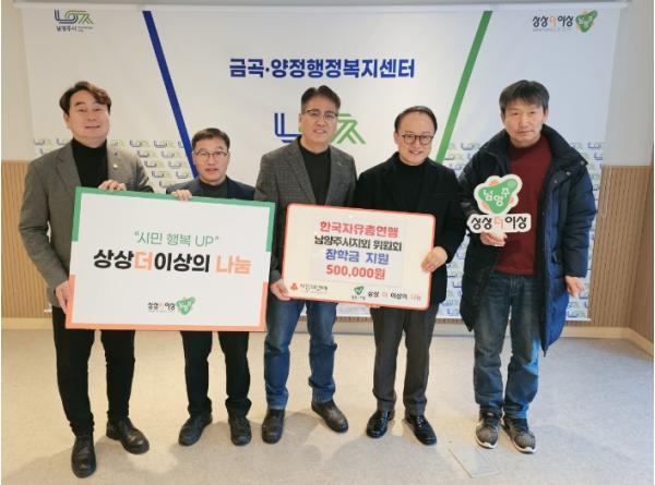 [한국뉴스타임=편집국] 남양주시 금곡양정행정복지센터(센터장 조성연)는 18일 한국자유총연맹 남양주시지회 위원회(회장 서상철)가 지역 내 취약계층 고등학생을 위한 장학금 50만 원을 전달했다고 밝혔다.