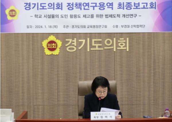 [한국뉴스타임=편집국] 경기도의회 교육행정위원회 연구단체인 ‘교육행정연구회’는 18일 교육행정위원회 회의실에서 ‘학교시설물의 도민 활용도 제고를 위한 법 제도적 개선연구’ 의 최종보고회를 개최했다.