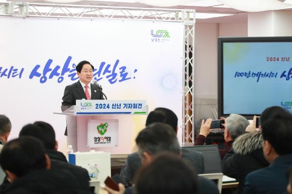 [한국뉴스타임=편집국] 남양주시는 23일 시청 여유당에서 시 관계자와 출입 기자 등 100여 명이 참석한 가운데, 2024 신년 기자회견을 개최했다.