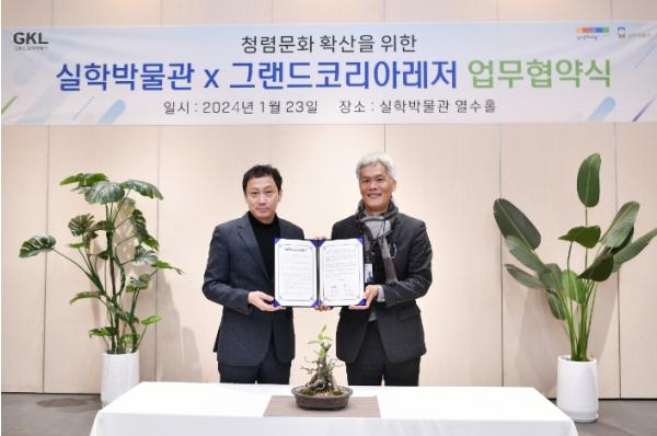 [한국뉴스타임=편집국] 경기문화재단 실학박물관(관장 김필국)은 1월 23일 그랜드코리아레저(GKL, 사장 김영산)와 청렴·윤리 활동 강화를 위한 업무협약(MOU)을 체결했다고 밝혔다. 업무협약식은 실학박물관 김필국 관장과 그랜드코리아레저(GKL) 김영산 사장을 비롯하여 양 기관 관계자들이 다수 참석한 가운데 실학박물관 열수홀에서 시행됐다.