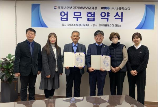 [한국뉴스타임=편집국] 국가보훈부 경기북부보훈지청(지청장 남창수) 제대군인지원센터는 1월 24일에 경기 고양시에 위치한 ㈜태룡에스디와 “제대군인 행복일자리 창출을 위한 업무협약”을 체결하고 ㈜태룡에스디(대표이사 김주형) 관계자들과 간담회 시간을 가졌다.