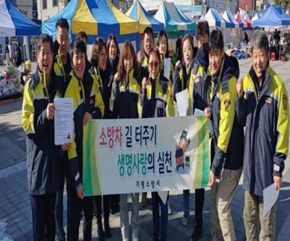 [한국뉴스타임=편집국] 가평소방서는 25일 다가오는 설 명절 및 겨울철 화재예방을 위해 화재안전 캠페인 및 소방차 길 터주기 훈련을 진행했다고 밝혔다.