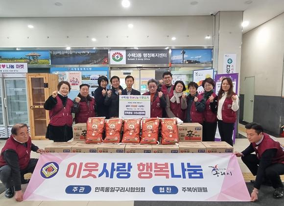 [한국뉴스타임=편집국] 구리시 수택3동행정복지센터는 지난 29일 민족통일구리시협의회로부터 설맞이 후원물품을 전달받았다.