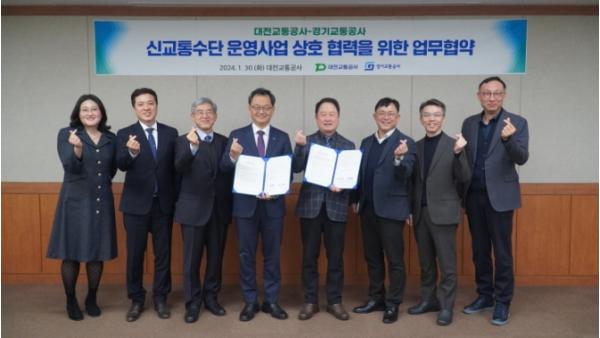 [한국뉴스타임=편집국] 경기교통공사와 대전교통공사가 30일 오전 대전교통공사 회의실에서 교통서비스 협력체계 구축 및 도·시민 편의 증진을 위한 업무협약을 체결했다.