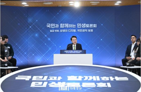 [한국뉴스타임=편집국] 윤석열 대통령은 1월 30일 오전 디지털 스타트업을 육성하는 판교 제2테크노벨리 기업지원허브 창업존에서 ‘상생의 디지털, 국민권익 보호’를 주제로 일곱 번째 ?국민과 함께하는 민생토론회?를 개최했다. 이번 토론회는 디지털 행정, 게임 콘텐츠, 디지털 의료서비스 등 국민의 일상 속 디지털 영역에서 국민의 자유와 권익 증진 방안을 논의하기 위해 마련됐다.