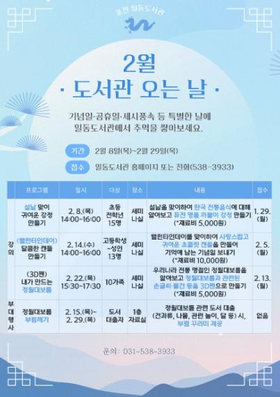 [한국뉴스타임=편집국] 포천시는 오는 2월 8일부터 2월 29일까지 일동도서관에서 ‘도서관 오는 날’ 프로그램을 진행한다.