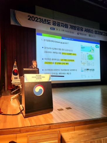 경기도는 1일 정부세종청사 15동 대강당에서 행정안전부가 주최한 ‘2023 공공자원 개방공유서비스 성과보고회’에 참석해 이 같은 내용의 경기공유서비스 운영 성과와 올해 추진 방향을 발표했다.