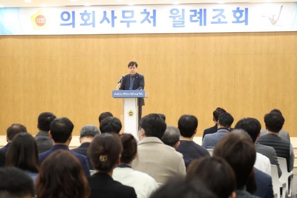 도의회는 1일 청사 대회의실에서 의회사무처 전 직원이 참석한 가운데 마지막 월례조회를 열었다.