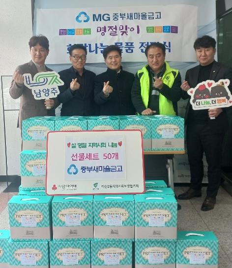 [한국뉴스타임=편집국] MG중부새마을금고는 지난 1일 설 명절을 앞두고 다산2동주민센터에서 취약계층 지원을 위한 54만 원 상당의 선물세트 50개를 전달했다.