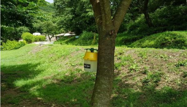 [KNT한국뉴스타임] 파주시 율곡수목원은 매미나방 등 돌발해충 방제를 위해 페로몬(pheromone)으로 해충을 유인해 포획하는 친환경방제방법을 추진한다고 27일 밝혔다.