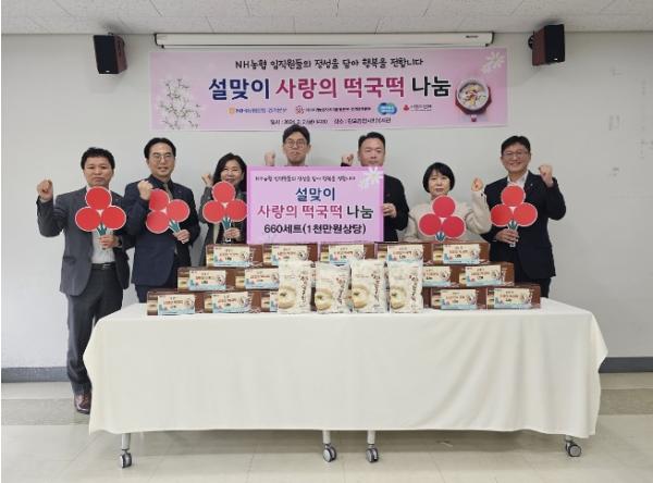 허승범 경기도 복지국장은 “설맞이 사랑의 떡국떡 나눔에 참여한 (사)우리농업지키기운동본부 경기지역본부, NH농협은행 경기본부 직원 모두에게 감사드린다며 어려운 이웃들에게 잘 전달되도록 최선을 다하겠다”고 말했다.