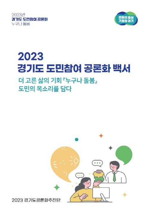 [한국뉴스타임=편집국] 경기도는 지난해 5월부터 12월까지 진행된 ‘2023 경기도 도민참여 공론화’백서(부제: 더 고른 삶의 기회 ?누구나 돌봄?, 도민의 목소리를 담다)를 발간했다고 4일 밝혔다.