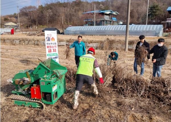 이번 영농부산물 안전처리 지원사업은 관내에 거주하는 농업인 중 농업경영체 등록 농가를 대상으로 산림연접지(100m), 고령층, 취약층 순으로 영농부산물인 고춧대, 깻대, 콩대, 잔가지 등의 파쇄 처리를 지원하는 사업이다.