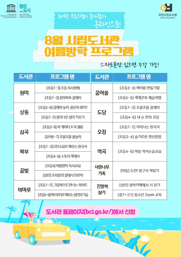여름방학 프로그램 운영내용 및 수강방법 등 기타 자세한 사항은 부천시립도서관 홈페이지에서 확인할 수 있다.