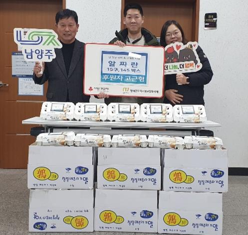 [한국뉴스타임=편집국] 남양주시 별내면은 5일 고근형 후원자가 설 명절을 맞아 독거노인 등 취약계층을 위해 100만 원 상당의 알짜란(15구) 145박스를 기부했다고 밝혔다.