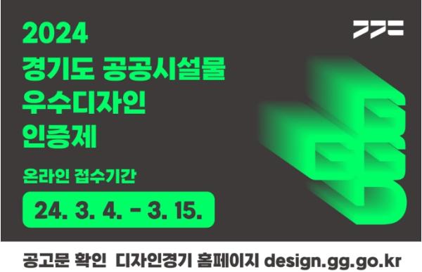 신청은 3월 4일부터 3월 15일까지 디자인경기 누리집을 통해 받는다. 인증제 신청 대상은 공공시설물 디자인을 직접 개발하고 생산·유통·사후관리(A/S) 등이 가능한 국내업체(개인 및 법인)와 현장 설치가 완료된 자체 표준시설물 디자인을 보유한 도내 지자체 및 산하기관이다.