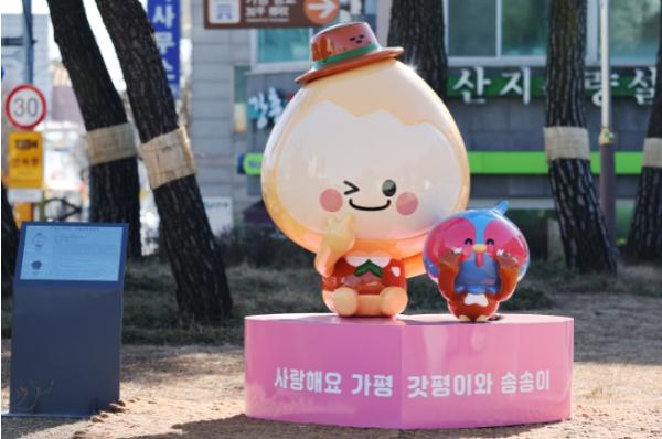 캐릭터 받침대로는 하트 모양에 ‘사랑해요 가평, 갓평이와 송송이’ 문구가 새겨지고 캐릭터 설명서도 설치되는 등 즐거움과 이해를 돕고 있다.