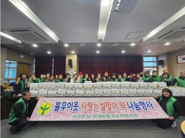 이번 행사에는 가산면 남·여 새마을지도자 40여 명이 참가해 취약계층 60가구에게 사랑의 설맞이 떡을 나눔했다.