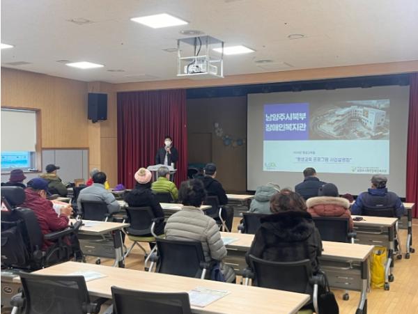 남양주시북부장애인복지관(관장 공상길)은 지난 5일 남양주시 거주 성인 등록장애인을 대상으로 평생교육 프로그램의 이해 및 사회참여 확대를 도모하기 위한 ‘2024년 평생교육 사업설명회’를 복지관 4층 강당에서 개최했다.