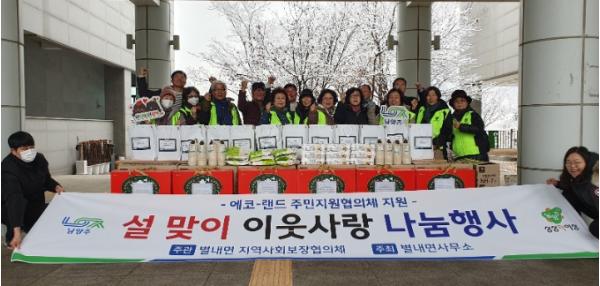 이날 나눔 활동은 에코랜드 주민지원협의체(위원장 이영근) 후원금으로 마련된 식료품 선물세트 110개와 별내면 테니스 클럽 최순아·김대영 부부가 후원한 떡, 사골세트 110개, 고근형 후원자가 기부한 영양란(15구) 145박스를 별내면 지역사회보장협의체 위원들이 취약계층을 직접 방문해 전달하고 안부를 확인하는 방식으로 이루어졌다.