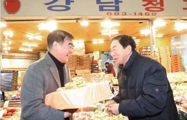 [한국뉴스타임=편집국] 경기도의회 염종현(민·부천1) 의장이 설을 앞둔 6일 ‘찾아가는 현장 도의회’ 활동의 일환으로 전통시장을 찾아 경기 침체 속 어려움을 겪는 상인들과 소통하는 민생 행보에 나섰다.