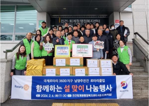 [한국뉴스타임=편집국] 국제로타리 3600지구 남양주진건 로타리클럽은 지난 6일 설 명절을 맞아 관내 경로당 어르신을 대상으로 설맞이 명절음식 꾸러미를 전달했다고 밝혔다.