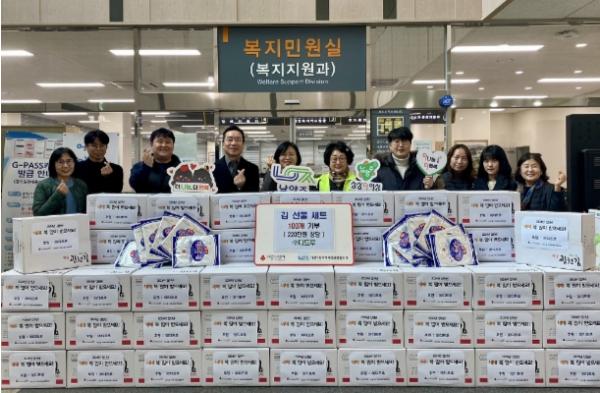 [한국뉴스타임=편집국] 남양주시 다산행정복지센터는 6일 ㈜디트루(대표 이민근)에서 설을 맞아 취약계층을 위해 220만 원 상당의 김 선물세트 100박스를 다산1동 지역사회보장협의체에 지정 기탁했다고 밝혔다.